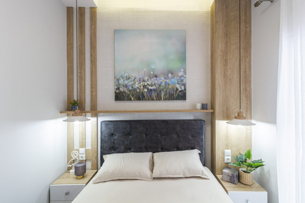 Το υπνοδωμάτιο του διαμερίσματος είναι ένας παράδεισος ξεκούρασης. Με άψογη συνοχή Η προσεγμένη σύνθεση υφών και χρωμάτων διατηρεί το ύφος της ανακαίνισης. σχεδιασμένο με έμφαση στην λειτουργικότητα, ένα άνετο κρεβάτι με Μια smart TV